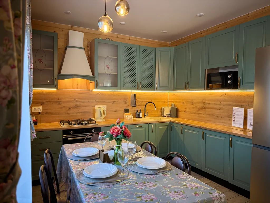 — комфорт как дома, а может и лучше: премиальное постельное бельё, пушистые полотенца и халаты, тапочки, удобные матрасы и полностью укомплектованная кухня