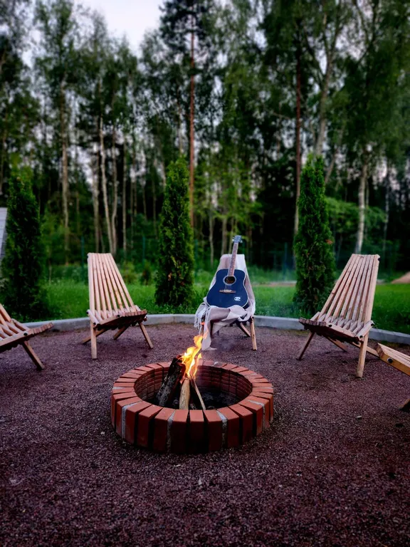 — мангальная и костровая зона, для душевных посиделок, удобные кресла кентукки
