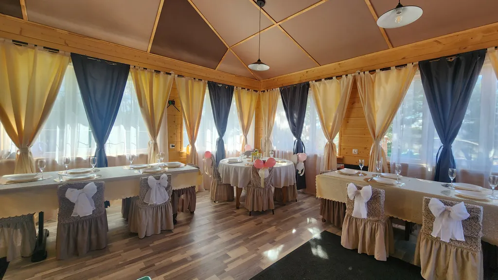 —большая банкетная терраса, tv, (3стола, стулья на 12 человек)