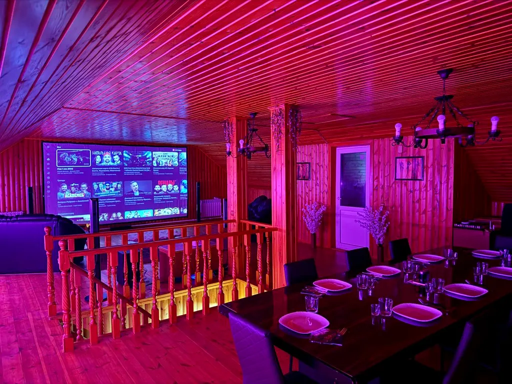 - Просторная комната отдыха с большим столом для шумных застолий и праздничных мероприятий.