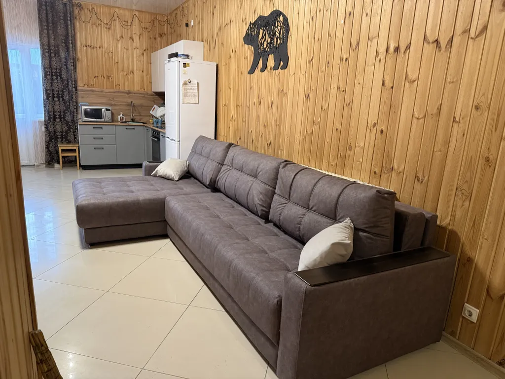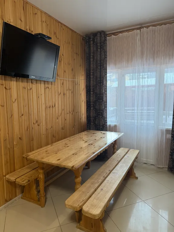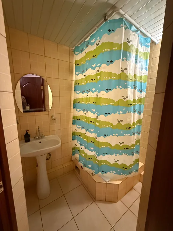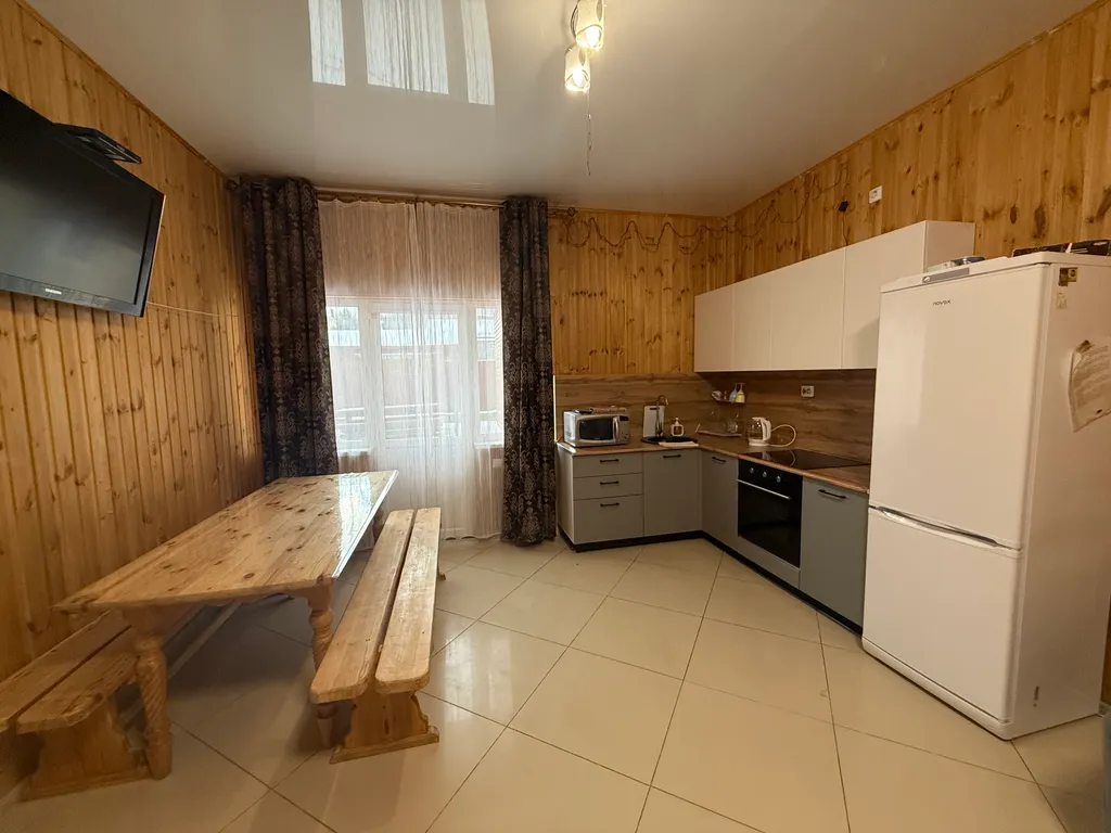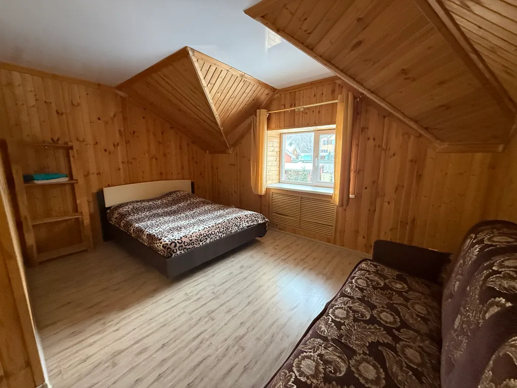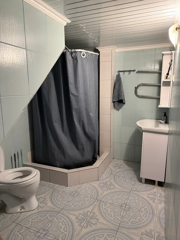 1 этаж: Кухня-гостиная с большим диваном и дополнительно с чайным столом, комната: две двуспальные кровати, с/у (душ, раковина, унитаз)