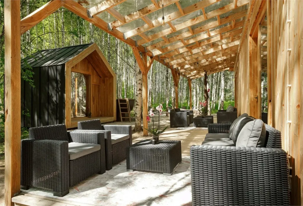 Главная особенность коттеджа – собственная русская парная, чан на дровах и приватная терраса с зоной BBQ. После парения особенно приятно выйти на свежий воздух, вдохнуть аромат леса и провести вечер в мягком свете огня.