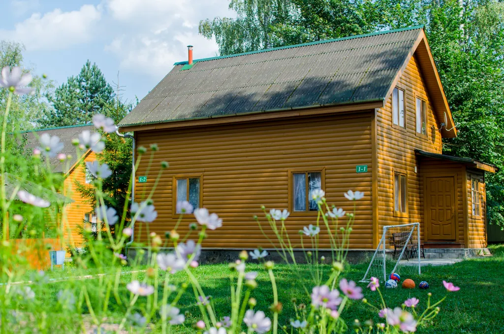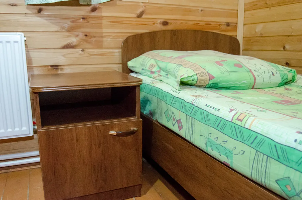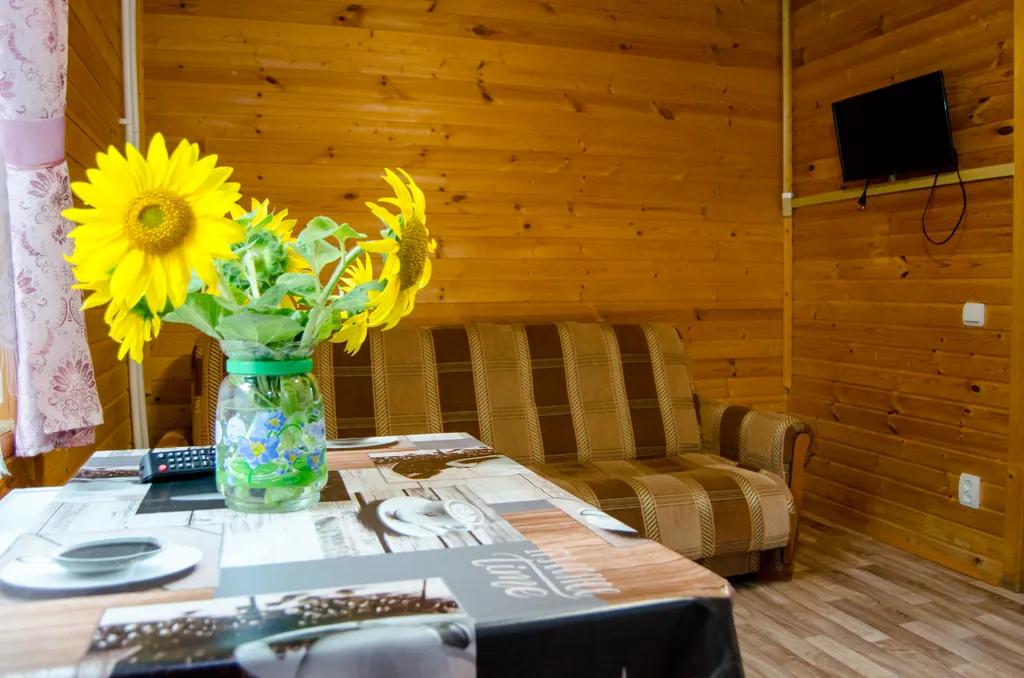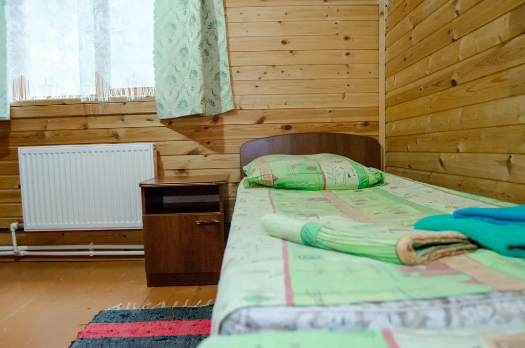 На первом этаже гостиная с ТВ, раскладывающийся диван. Кухня с холодильником, СВЧ, электрической плитой и необходимым набором посуды для самостоятельного приготовления пищи. Санузел с душевой кабиной. На втором этаже две раздельные спальни. Одна спальня с 2-х спальной кроватью (или с двумя 1,5-ми спальными). Вторая спальня с двумя 1,5-ми спальными кроватями. Есть размещение одна спальня с 2-х спальной кроватью и одной 1,5 спальной кроватью. Вторая спальня с двумя 1,5-ми спальными кроватями.