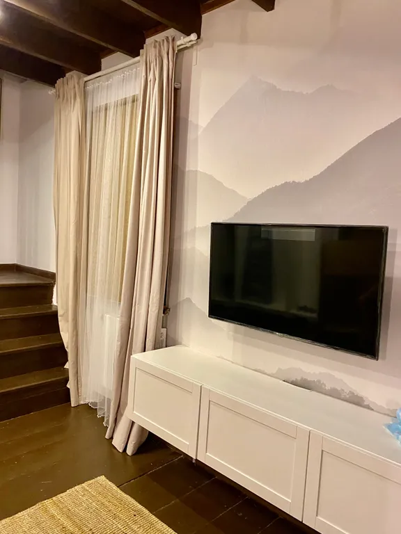Комната 2 проходная: двуспальный диван, телевизор, шкаф.