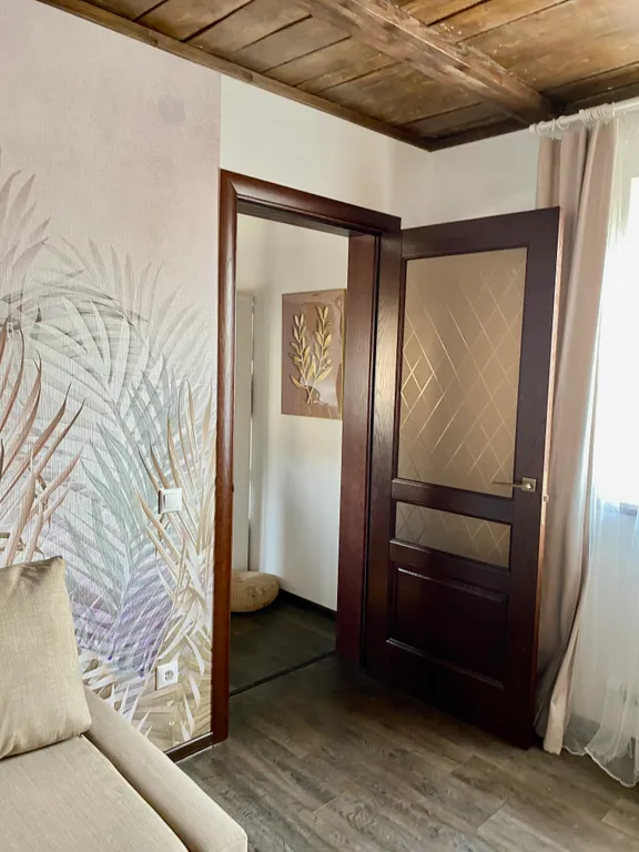 Комната 1: двуспальная кровать, прикроватные столики, выход на террасу.
