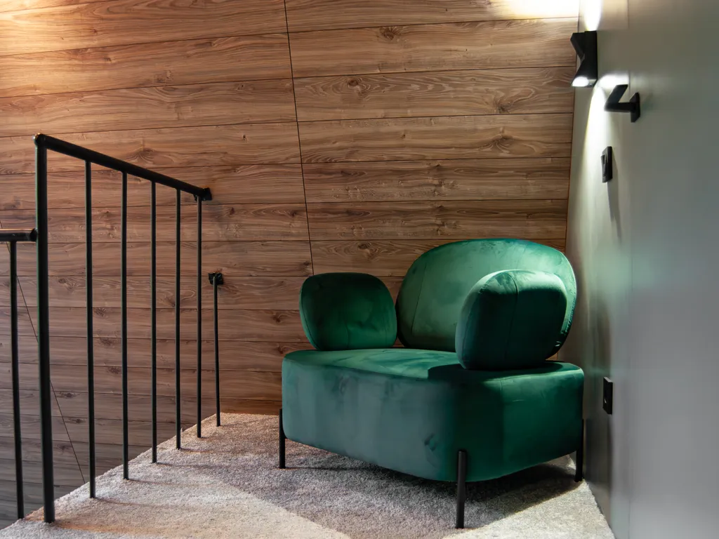 - большая терраса с садовой мебелью, пледами и видом на вековой лес;