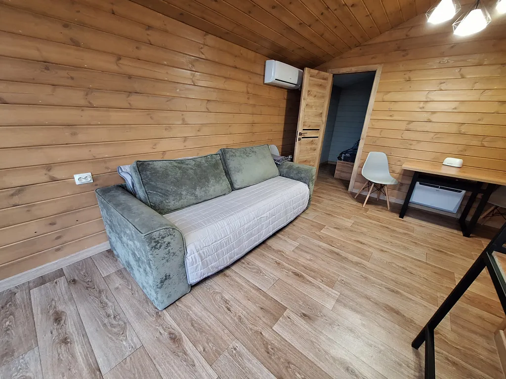 Состоит из трёх комнат, оснащенных 2-мя односпальными кроватями, 1-ой двуспальной, в гостиной - раскладной диван