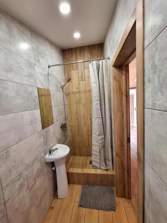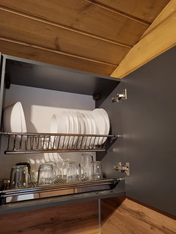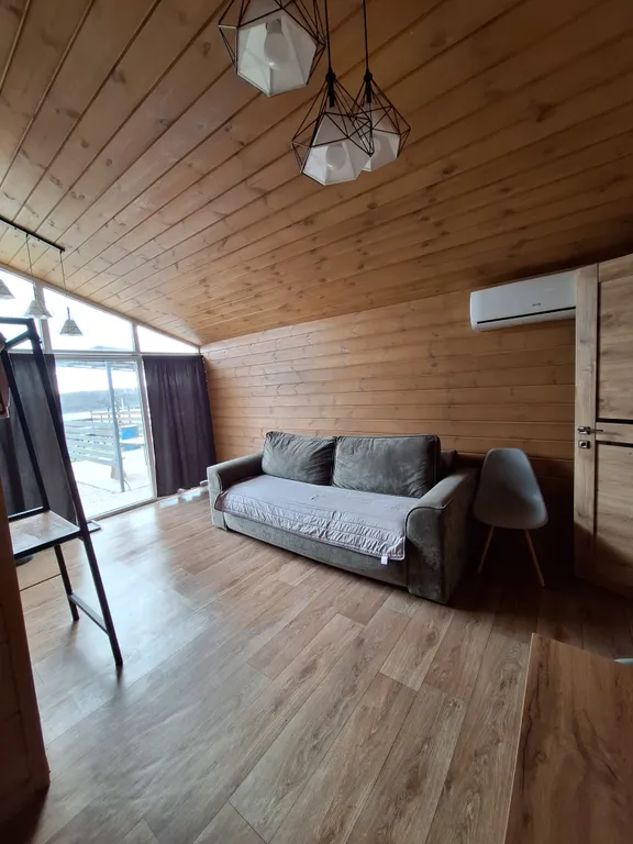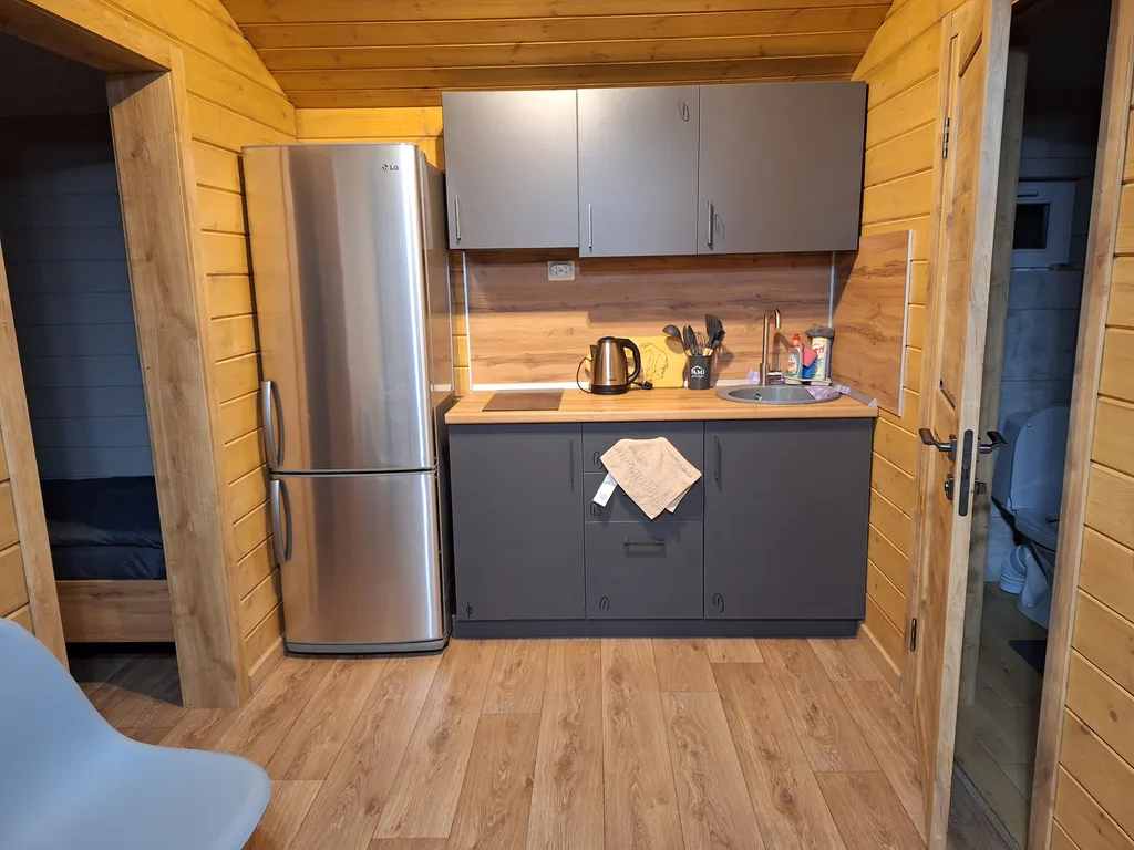Есть сплит-система, холодильник, морозильная камера, тв, холодная и горячая вода, обогреватель, оборудован санузел (туалет, душ), мойка, индукционная плита.