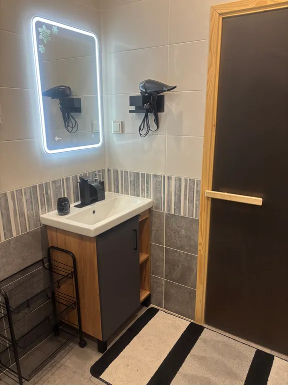 Ванная комната оснащена всем необходимым для комфортного отдыха: гель, шампунь, одноразовые зубные щётки с пастой, полотенца (3 шт. на каждого).