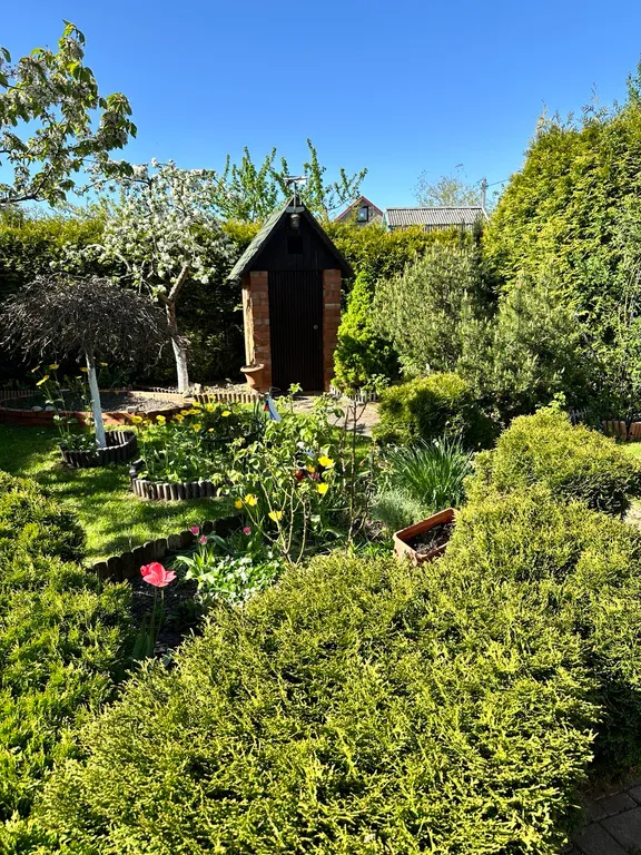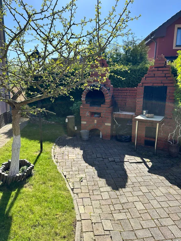 На территории находится, лужайка и беседка с барбекю комплексом.
