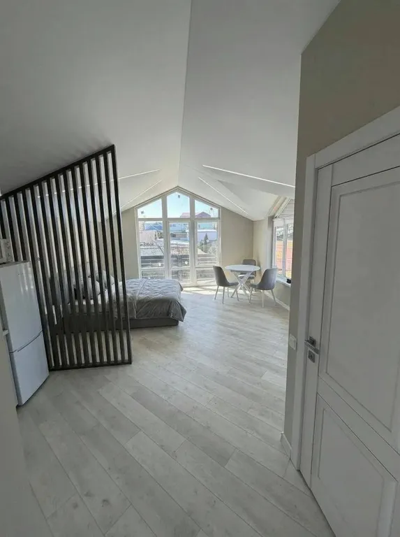 Имеет балкон, террасу и спальню с приятным интерьером.