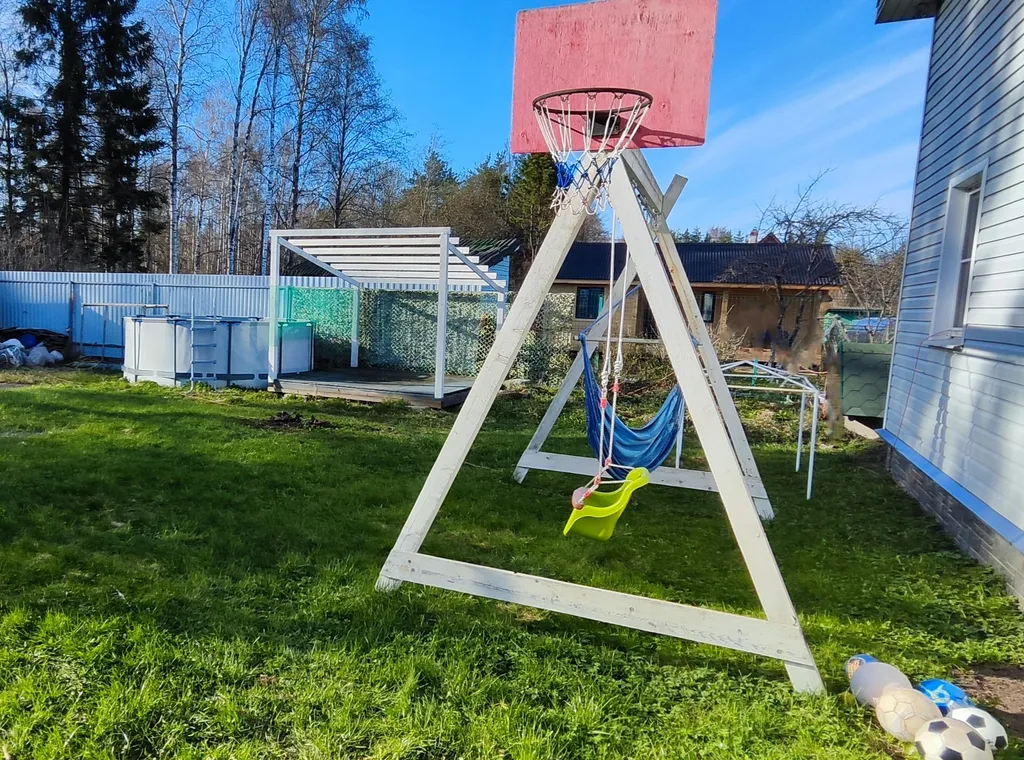 Большие детские качели, гамак, батут, баскетбольное кольцо, бадминтон