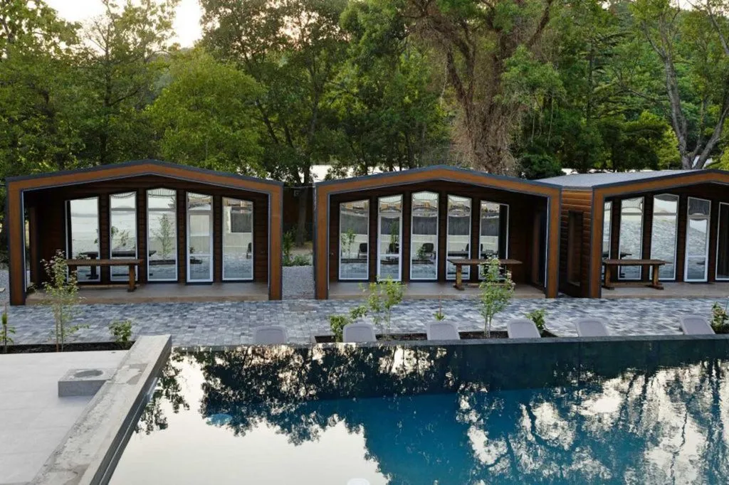 Отель «Море Village» — это идеальный выбор для отдыха на Черном море в курортном посёлке Лермонтово (Туапсинский район). Комплекс расположен всего в 3 минутах пешком от пляжа «Золотые пески» — песчано-галечный берег с чистой водой и удобным входом в море. Здесь гости найдут уютные современные коттеджи с просторными комнатами, собственной кухней и всем необходимым для комфортного проживания. Все домики оформлены в тёплых тонах, имеют кондиционер, телевизор, холодильник, микроволновую печь и террасу с мебелью — идеально для семейного отдыха или путешествия с друзьями.
