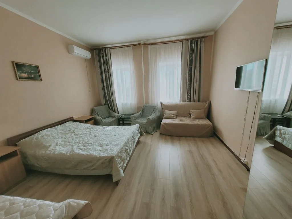 Небольшой гостевой дом «Друзья» ждет вас на отдых! До моря близко!!! Не центр-МОРЕ чистое!!!зеленый просторный двор!!! Светлые уютные номера на любой вкус: ЭКОНОМ и с удобствами, ЛЮКС и КОМФОРТ! Со свежим ремонтом и новыми матрасами находятся на террасе вокруг сада, оснащенной столиками и креслами для обеда и отдыха. В номерах кондиционер, холодильник и телевизор. Холодная и горячая вода постоянно.Свежее постельное белье и полотенца. Туалетная бумага и жидкое мыло. Есть Все для стирки и глажки. Есть 2 кухни для приготовления пищи, оборудованные всем необходимым: СВЧ, газовая печь, посуда, столовые приборы. Номера на 2-3-4-5 чел.С одной и 2 спальнями. Просторный двор с цветами,деревьями,виноградом с качелями, птичками и бабочками ,мангальной зоной, беседками и зоной для курения. На всей территории-бесплатный WI-FI. Бесплатная парковка. До моря 12 мин спокойным шагом — под соснами по санаторию без подъема. Для вас комфортабельные пляжи «Лазурный», «Солнечный»,Русь и др. Рядом аквапарк. Мы рады семейным гостям,друзьям-кому нужен спокойный, комфортный и уютный отдых,в приятной обстановке. Мы тщательно следим за чистотой .Уборка делается паром,дорогой химией.Белье прожаривается под прессом. Правила дома-без вечеринок и мероприятий,без гостей и посторонних лиц.Тихие часы с 22.00 до 09.00-чтобы вы высыпались.Но приходить и уходить можно в любое время) Доп уборка и смена белья один раз в неделю. Возможно размещение с питомцами-средних и малых пород,за доп.плату и только после согласования! Посмотрите отзывы о нас — мы рады, когда наши гости довольны! Отличное местоположение: 10–12 мин до набережной и пляжа, но не шумно! Рядом магазины, столовые и кафе, аквапарк «Золотая бухта», АРЕНА и Винный город,Сафари парк.