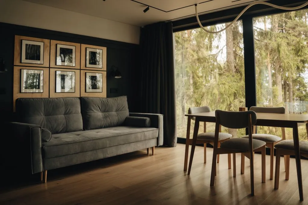 Банный комплекс в лесу на берегу озера. Проживание в стильных и современных домах с панорамным видом. Карелия, Петрозаводск. Всего 15 км. от города. Озеро Лососиное, первая береговая линия, свой пляж. Большая благоустроенная территория, отсутствие посторонних. Охраняемая парковка. В домах мы позаботились о вашем комфорте и безопасности: - интеллектуальная современная вентиляция с системой контроля качества воздуха - кондиционер - Матрасы ORMATEK линейки отелей 5* для вашего беззаботного сна - премиальная косметика от УНЕ - десятки сценариев освещения от Maytoni - шторы на голосовом управлении, ТВ и большая Алиса - тропический душ - полностью оборудованная кухня: плита, холодильник, капсульная кофемашина, посудомойка - 2 спальных места - кровать kingsize и удобный раскладной диван. Количество гостей в доме 1-4 человека. Завтраки включены В банном комплексе 2 бассейна и купель: - теплый многоуровневый внутри бани - горячий уличный на террасе под открытым небом. - купель с ледяной водой внутри бани, а также зимой мы готовим для наших гостей прорубь! Баня на дровах с идеальным мелкодисперсным паром. Просторная парная, русская печь с закрытой каменкой, парной стол, обливная система, чил зона. Коллективные и индивидуальные программы парений от профессиональных пар-мастеров. Гостиная с полностью оборудованной кухней и всей необходимой посудой. Музыкальная система JBL. Зона отдыха, огромная терраса, 2 раздевалки, 2 санузла, 3 душа. Идеальное место для вашей перезагрузки и отдыха.
