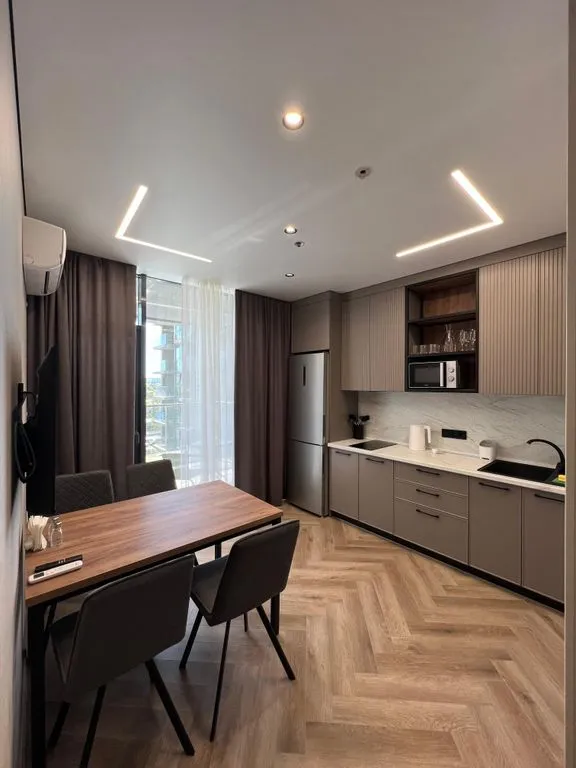 Новые комфортабельные апартаменты на первой линии в 100 метрах от моря. Комплекс апарт отель Золотой берег находится на Пионерском проспекте, имея уникальное расположение. На территории комплекса есть бассейн. В шаговой доступности пляж, магазины, рестораны, кофейни, парк аттракционов, начало набережной, супермаркет Перекресток. Апартаменты новые и оснащены всем необходимым для комфортного проживания. Предоставляется постельное бельё, набор полотенец, посуда, утюг, гладильная доска, микроволновая печь, стиральная машина, 2 телевизора, холодильник. Можно разместится до 5 человек. В апартаментах есть балкон, оформленный стильной мебелью для отдыха с потрясающим видом. Абсолютно новые апартаменты ждут своих гостей. скрыть Спальные места: 4 1 кровать king-size, 1 двуспальный диван-кровать