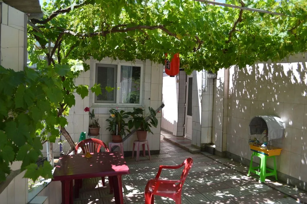 Само расположение очень удачно: двор находится на чистой, широкой улице курской, в 500 метрах от моря и знаменитого золотого пляжа (пешком 5-7 минут пути), что позволяет дышать свежим воздухом и не слышать шум трассы, проходящей вдоль моря. Недалеко от гостевого дома есть рынок, кафе и магазины, напротив есть продуктовый магазин. В самом дворе очень уютно, прохладно, гостей встречают радушные хозяева. Во дворе растет много винограда, из него делается вкуснейшее домашнее вино, которое в ассортименте предлагается нашим гостям. Так же планируется создание кафетерия, где гости смогут продегустировать свежесваренный кофе. Возле двора есть широкая стоянка для ваших авто.