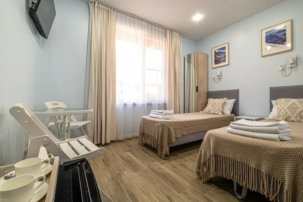 Гостевой комплекс «Аркасара» с видом на горы расположен в живописном месте села Архыз. Эко-дом. Натуральное дерево. Профилированный брус. Дом двухкомнатный с террасой. 52м2. Прихожая. Гостиная: диван-кровать, телевизор, обеденная зона, оборудованная кухня (холодильник, варочная панель, микроволновая печь, электрический чайник, микроволновая печь, посуда). Спальня: 3 односпальные кровати, шкафы. Санузел с душевой. Гостям предоставляются полотенца и постельное белье. К услугам гостей круглосуточная регистрация. Wi-fi. На территории предоставляется бесплатная частная парковка. Помещение для хранения и сушки ботинок и лыж. В распоряжении гостей зона-барбекю с принадлежностями. Баня на дровах (бронируется отдельно). В шаговой доступности магазины, кафе, пункты проката горнолыжного снаряжения. В окрестностях популярны различные виды активного отдыха, в том числе верховая езда, велосипедные прогулки и лыжный спорт.