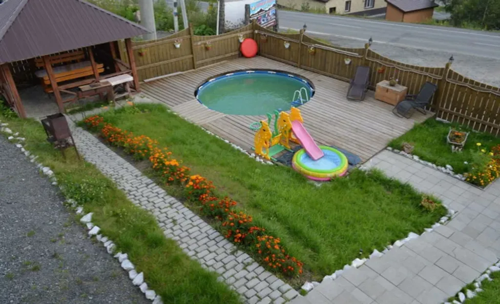 Ёлочка - и зимой, и летом отдохнуть советуем! Провести время у нас в гостевом дворе - это хороший способ развеяться, отдохнуть, хорошо провести время. Мы рады видеть у нас и семейные пары с ребятишками, и веселые дружные компании. Гостевой двор находится по дороге на г.Зеленая в 2 км. от сектора "А" и "Б" и в 3 км. от сектора "Е". Расположен у центральной дороги, что очень удобно в заснеженные зимы.) для выезда и заезда. Нас легко найти и гостям, и такси. А можно и пешком прогуляться до посёлка Шерегеш (10 минут). - Ближайший магазин "Горный континент"( 10 минут ходьбы). - Прокаты горнолыжного снаряжения: "Топ прокат" и "Эконом прокат" (5 минут ходьбы) - На территории расположен комплекс "Царская мыльня", где есть возможность (за доп.плату) посетить баню или ЧАН (горячая купель на улице). -На территории двора расположены два дома, у каждого из них своя зона отдыха с беседкой и мангалом. В стоимость проживания входит пользование беседкой и мангалом. Для ребятишек на территории организована детская площадка. В летний период во дворе есть каркасный бассейн (без подогрева) Приезжайте! Здесь вам рады!