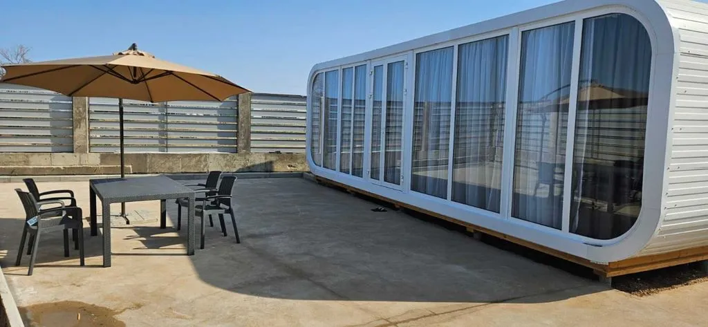Приглашаем вас насладиться отдыхом на волшебном морском побережье Каспия для семейного отдыха. К вашим услугам предлагаем два светлых, комфортабельных домика с панорамным видом, расположенных рядом на песчаном берегу моря в 30 метрах от воды. Оптимальное размещение до 4 человек в каждом домике. Проживание: Каждый домик состоит из уютной спальни, гостиной, кухни, ванной комнаты (санузел, душевая) и оснащен необходимой мебелью и техникой (двуспальная кровать, раскладной диван, шкаф-купе, холодильник, телевизор, стиральная машина, гладильные принадлежности), постельное бельё, полотенца и ванные принадлежности имеются. Есть Wi-Fi. Питание: Самостоятельное, в каждом домике есть все необходимое для приготовления пищи. Территория огорожена забором и находится под постоянным видеонаблюдением. Имеется просторная солнечная терраса, где вы можете отдыхать с семьёй и друзьями и наслаждаться панорамным видом на море. На территории имеется мангальная зона, беседка, уличный душ и санузел. Имеется возможность рыбалки. Есть место для парковки автотранспорта. В 15 минутах ходьбы по пляжу расположен аквапарк. Недалеко имеются ресторан, кафе, столовая, супермаркет, магазины, аптека. В пяти минутах остановка городского автотранспорта.
