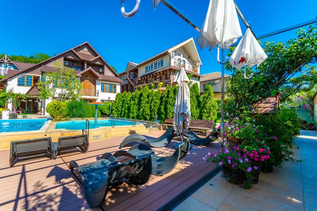 Гостевой дом «Демерчи» расположен в селе Лермонтово (Краснодарский край, Туапсинский район) – одном из популярных курортных поселков на черноморском побережье. Это место подходит для спокойного семейного отдыха, а также для тех, кто ценит комфорт и уют вдали от шумных туристических центров. 1. Расположение - Расстояние до моря: ~ 300–500 м (5–7 минут пешком). - Район: тихий, жилой, рядом – частный сектор и другие гостевые дома. - Инфраструктура поблизости: магазины, кафе, рынок с местными продуктами, остановка общественного транспорта. 2. Территория и инфраструктура - Территория: благоустроенная, с зелеными насаждениями, зонами отдыха, беседками или мангальной зоной. - Дополнительно: возможна организация экскурсий. 3. Номера и условия проживания Гостевой дом предлагает несколько категорий номеров: - Комфорт - Стандарт - Улучшенные (полулюкс/люкс) - Отдельный коттедж В номерах обычно есть: - односпальные/двуспальные кровати, - санузел (душ, туалет), - кондиционер, - телевизор, - холодильник, - Wi-Fi (не всегда стабильный), - балкон/терраса (в некоторых). 4. Пляж - Ближайший пляж: песчано-галечный. - Инфраструктура пляжа: лежаки, зонтики, кафе, водные развлечения (бананы, гидроциклы). 5. Услуги и развлечения - Экскурсии: можно заказать в Туапсе (35 км), Джубгу (Аквапарк), Агой (дельфинарий). - Для детей: игровая площадка на территории , детская зона в бассейне, мелководные участки на пляже. - Трансфер: возможен из Туапсе или Джубги (договариваться заранее).